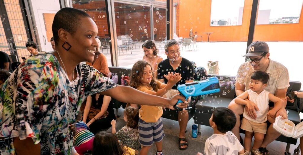 It’s not uncommon to see Thembi Palmer crawling on the ground, breaking into a dance, or spraying kids with a bubble gun during her reading sessions. The founder of Imagine More Story Adventures aims to get kids — in groups of five or fewer to more than a 100, which she hosts 12 to 15 times each month — excited by books so that they become lifelong readers. Her sessions go beyond the simple read-aloud storytimes: Palmer incorporates music, crafts and STEM lessons into her work.