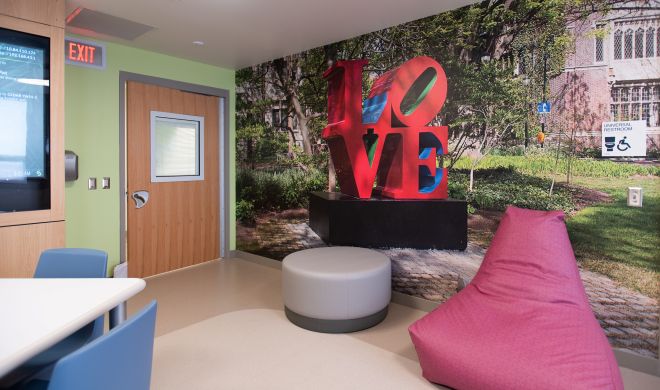 Kids and families can literally walk in, drive in, take public transportation — the BHCC is that accessible. It’s also not intimidating. The decor is new, clean, bright — that CHOP signature look. Security guards wear polo shirts and khakis, not police-looking gear. Kids can expect to have a mental health evaluator sit and talk with them about issues. Someone will talk with them not only about what the psychiatric or behavioral health issue is, but how is the family doing overall? Are they able to meet their basic needs? If not, CHOP will help families find community partners to meet their needs not only from a mental health standpoint but from the bigger-picture health standpoint. They can help families sign up for health insurance, or find resources that are free or don’t require insurance. They come up with return-to-home plans. They think of the big picture, and the little details: If a family comes in and doesn’t wrap up until 3am, CHOP will help them find a safe way home.