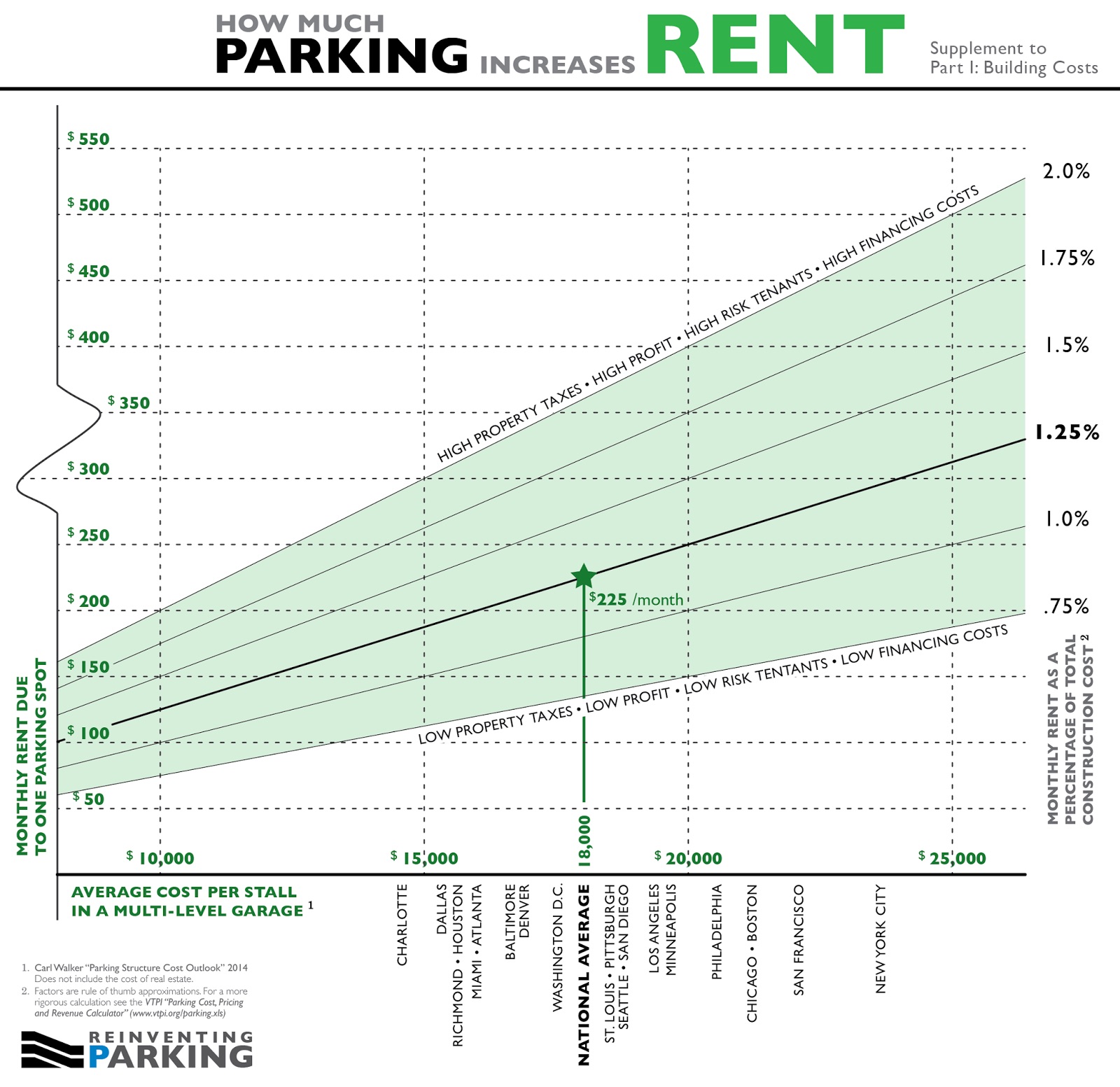 Citywide, adding a single parking space adds between $18,000-28,000 to the cost of a home, on average, or about $150-400 per month in rent.