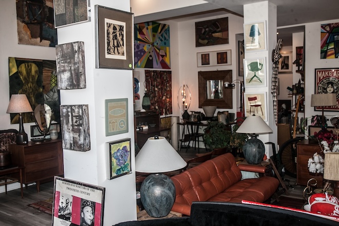 Back to the shop, though. He tells me he specializes in Bauhaus era and Hollywood Regency items — two eras interrupted by wars — but his bread-and-butter is mid-century modern. That’s what the people still want. And, he dabbles in my favorite era: the 1980s.