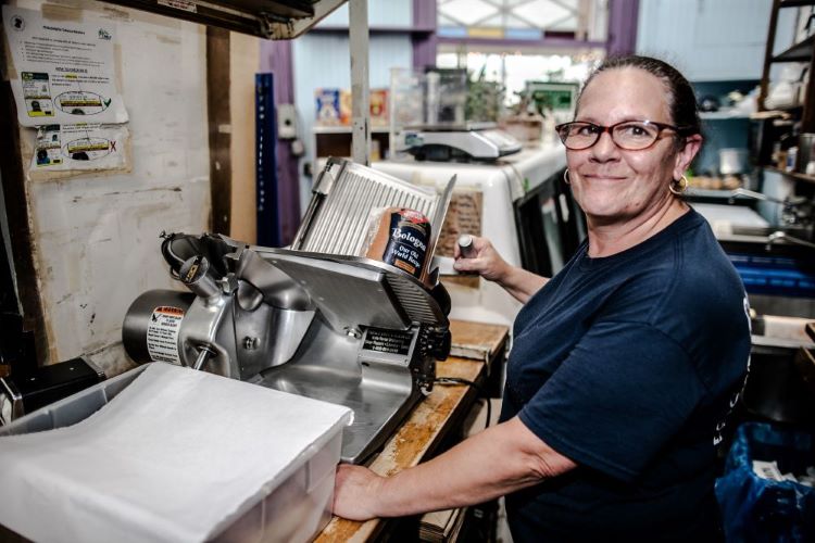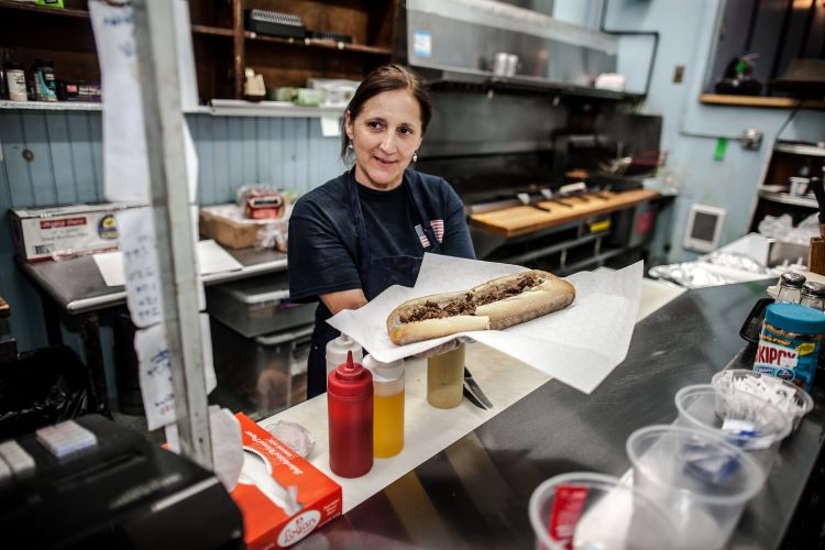 First up is Sorrentino’s Deli, a mainstay in Manayunk on Cresson Street under SEPTA’s elevated rail line (4631 Cresson Street). Patricia Sorrentino Westerfer’s father, Joe Sorrentino, started the business in 1980. Sorrentino’s has served the working-class neighborhood of mostly Irish, German, Polish, and Italian descent and sells hoagies, cheesesteaks, breakfast sandwiches, and cold cuts by the pound. (The corner shop is also a mini grocery, stocking essentials you’d rather not have to schlep to a supermarket to buy.)