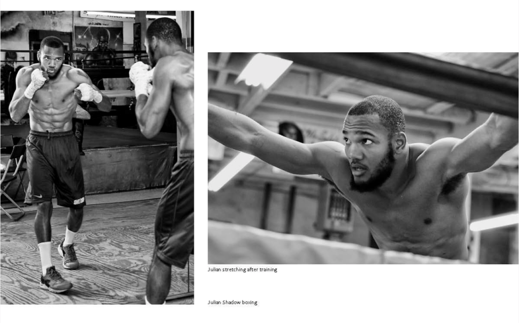 After taking the photos I needed for the fundraiser, I became more and more drawn into the intensity of how the boxers were training and the intimate interpersonal interactions I witnessed. I began to document the people of this gym and what they were practicing and decided to make this book.
