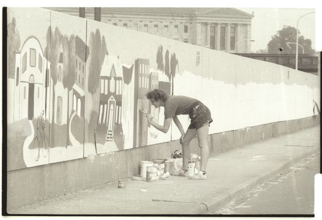 She sent him her resume and soon after heard from Tim Spencer, the Network’s executive director, who offered her a part-time job for $12,500. A few months later, Spencer made a proposition: If she could manage to paint a mural on the defaced Spring Garden Bridge in three weeks — before a luminary Jesse Jackson came to town — he’d give her a full-time job.
