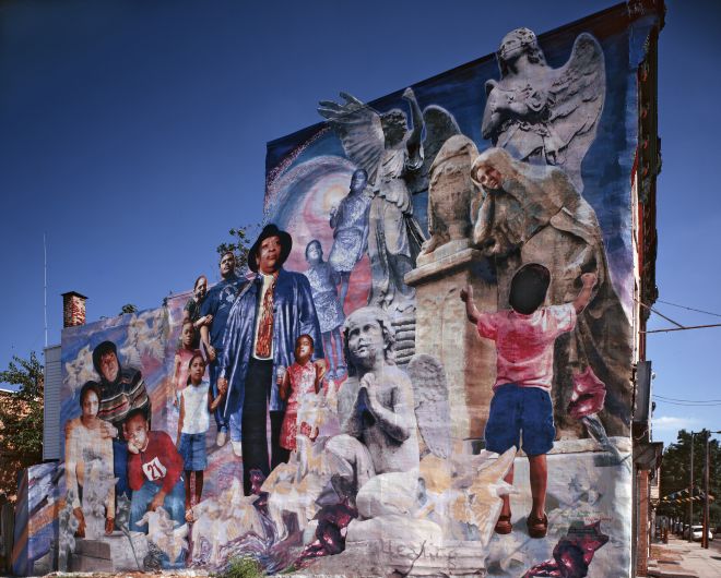 “It was almost revolutionary to suddenly see neighborhoods being reclaimed through art, that suddenly on these three-story buildings, there were these figures that look like people who live there,” Golden says. “People would say, Well, I go to the museum, I don’t see anyone that looks like me, but I go across the street and I see this. There was a lot of power in that, and it made people start to believe that change was possible.”
