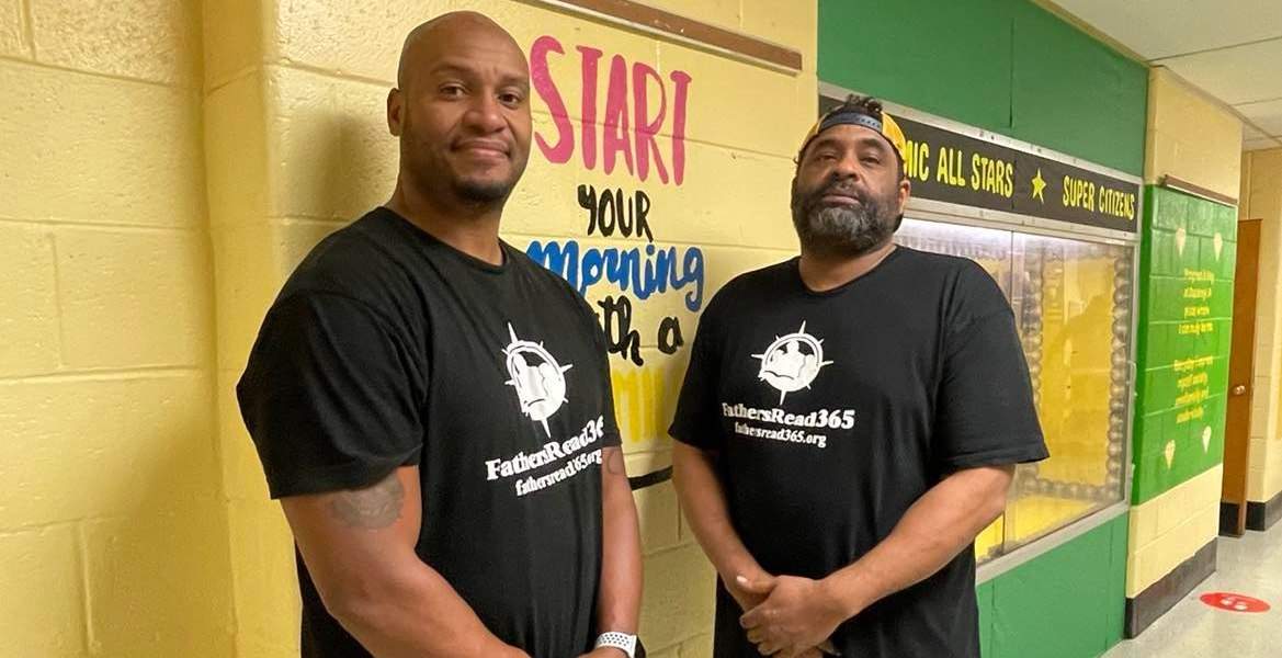 Brent Johnstone and Akeiff Staples of Fathers Read 365, a Philadelphia organization that encourages pre- and early elementary students in Philly to read and to believe in themselves.