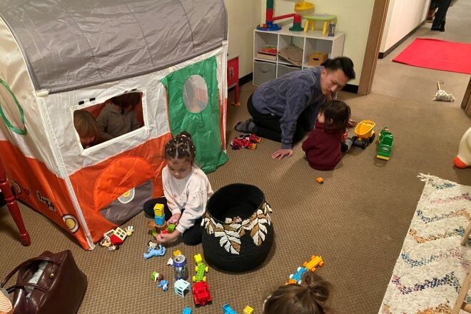 They host events, like potlucks and children’s music classes, in the space, but often families just come to hangout. Dropping by is the founders’ ultimate goal. Caregivers come with their children, but many are able to relax and talk with one another, knowing the rooms are safe and filled with age-appropriate toys and games, plus the watchful eyes of other adults.