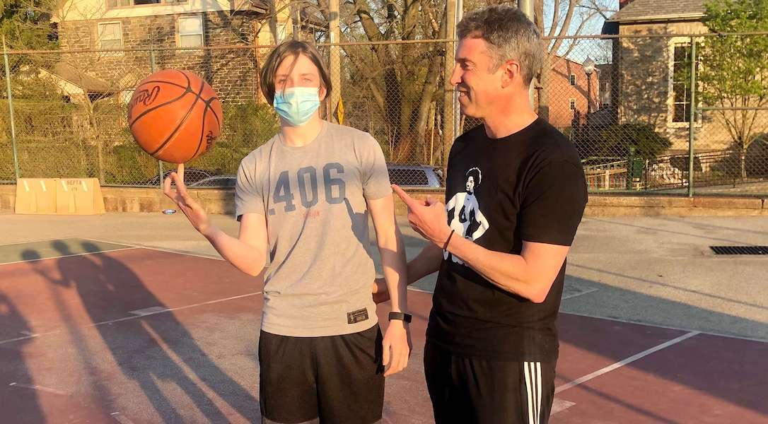 “When I was younger, we cut the bottom out of milk crates, put them on telephone poles, and shot through those,” he says, describing a scene that sounds as though it could have been lifted from Hoosiers. He’s stuck with the game his whole life: playing—adequately, as he says, and not even on varsity—during his high school days at Germantown Friends School (GFS), then socially throughout college, and on until today: Two mornings a week at 6am, he meets up with men from all walks of life in Philly to play at the GFS gym.