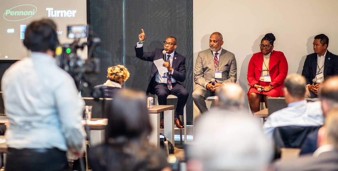 PAGE receives pitches from small businesses interested in bigger contracts, meets with leaders at large institutions interested in diversifying and localizing their contractors, and hosts events to bring business leaders together to talk about best practices for working with diverse contractors. So far, they’ve hosted two such events, including a 2023 Real Estate and Construction Summit with 21 anchor institutions. James estimates they’ve reached 250 people in the industry through these events.