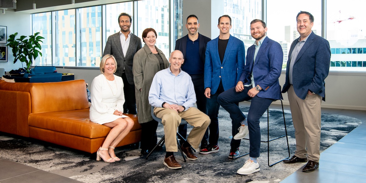 Dispatch Biotherapeutics executive team, left to right: Jennifer Flaisher, Chief People & Culture Officer; Naveen Bazaj, SVP Corporate Development; Barbra Sasu, Ph.D., Chief Scientific Officer; Carl June, MD, Academic Co-Founder and SAB member; Sabah Oney, Ph.D., CEO; Jeff Marrazzo, Founding Chairman; Lex Johnson, Ph.D., Co-Founder and Chief Platform Officer; Chris Wiwi, Ph.D., SVP Technical Operations.