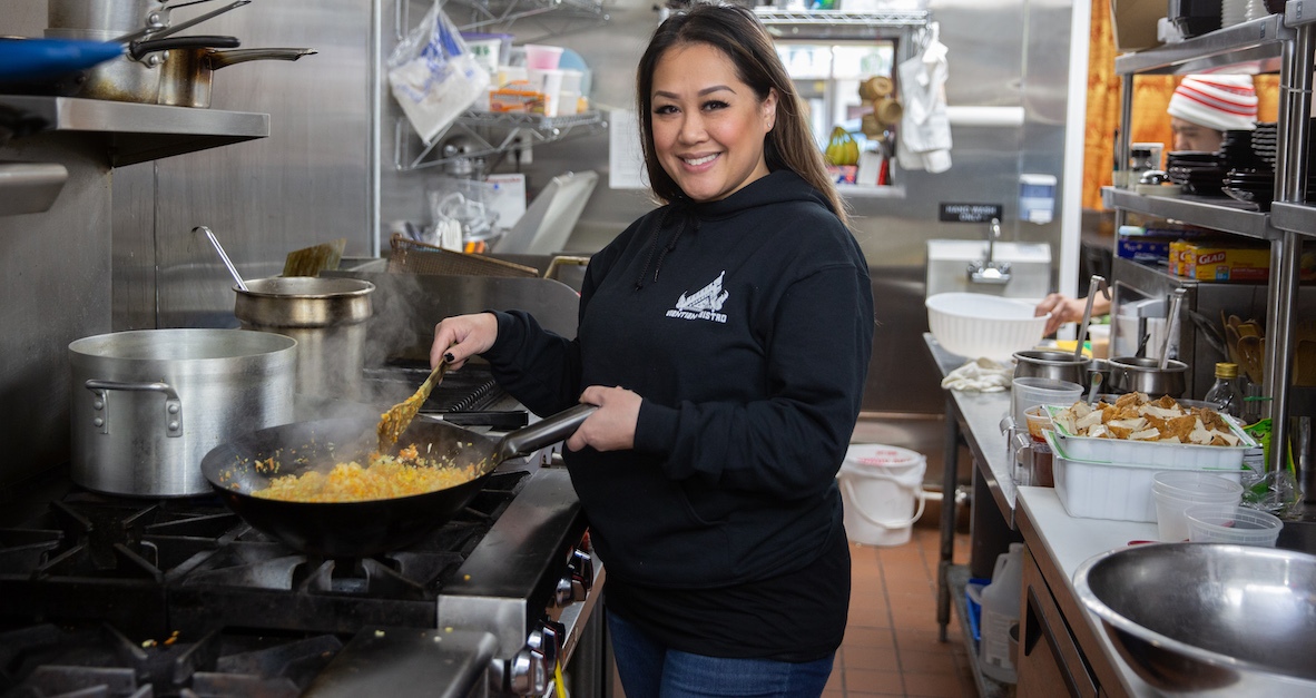 At Lalo, Neal Santos and his partners, Jillian Encarnacion, Resa Mueller, and Michael Cher, had been doing Filipino pop-up dinners at various restaurants for five years before deciding to open shop in The Bourse. Lalo is a play on the Tagalog words for grandmother and grandfather, an homage to Encarnacion’s grandfather, who actually sold kebabs and other Filipino food from a cart across the mall for more than 30 years. “We liked the idea of being in one place. It has a similar feel to a food truck,” Santos says. They also like the camaraderie with the other vendors, and the shared sense of community and purpose.