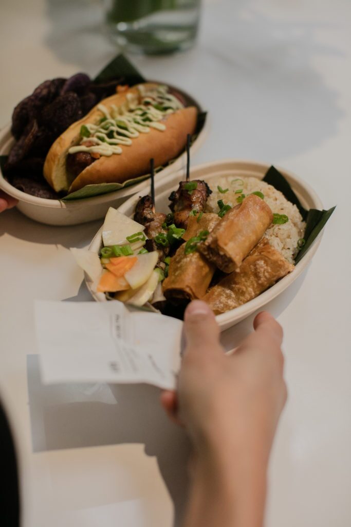 To be clear, there is very little “food court food” among The Bourse’s 28 vendors. I tucked into a Kushari bowl of delicious spiced chicken served over lentils, chickpeas, and a tangy tomato sauce from Ka’Moon, a Egyptian fast casual spot. From Lalo, the bright and cheery Filipino street food stall, I devoured a rich beef stew called kaldereta, along with long-si-log, a housemade pork sausage over garlic rice, topped with a soft egg, and a side of pork and lemongrass egg rolls called lumpia shanghai. From Chaat and Chai, I ate tasty chaat rolls one with lamb and another with cauliflower, flavored with mint-coriander and tamarind-date chutneys and masala.