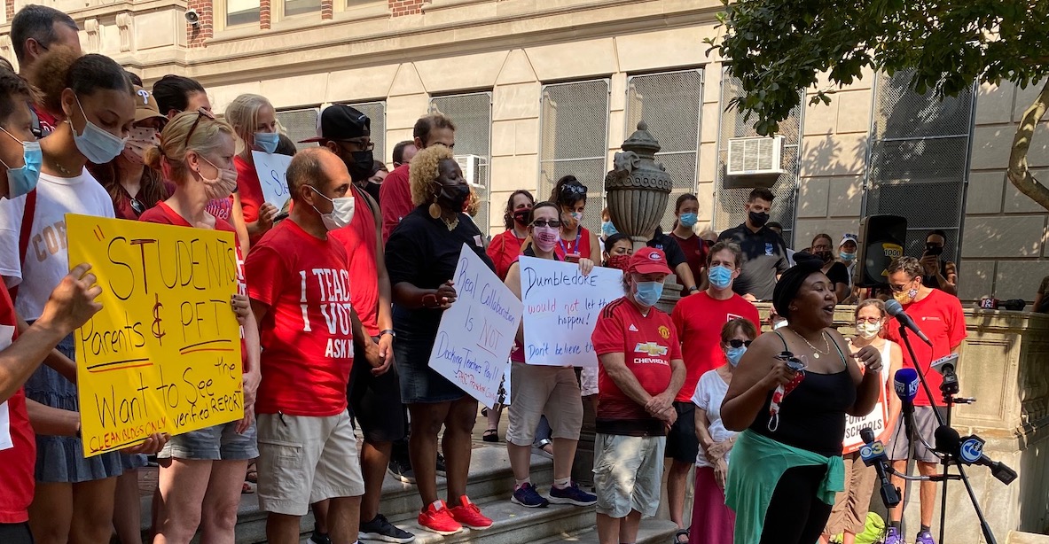 Meanwhile, at almost the same time, teachers across town at Science Leadership Academy-Beeber also walked out of work after they discovered several health hazards at their building—this time prompting a mea culpa from the District and an announcement that SLA-Beeber students would have to start the year…virtually.