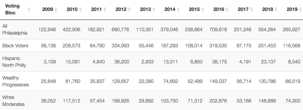 Last week we took a look at which groups of wards played a decisive role in the 2019 general elections, and specifically Working Families Party candidate Kendra Brooks’s surprise win in the At-Large Council race. The wards are small enough that they can be a good way to understand by proxy which demographic groups supported which candidates, but thanks to Jonathan Tannen’s Sixty-Six Wards’ Ward Data Portal, there’s an even more fine-grained way to look at this.