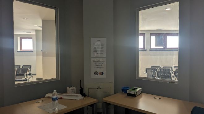In the morning, PPD officers in Kensington locate and arrest individuals for summary offenses — low-level city ordinances, such as obstruction of highways (and other passageways), criminal trespass, disorderly conduct, public drunkenness, and possession of drugs and/or paraphernalia — then take them to the KWSC. There are no guns in this building, not even on PPD officers. Lockers are present in the vestibule for storage.