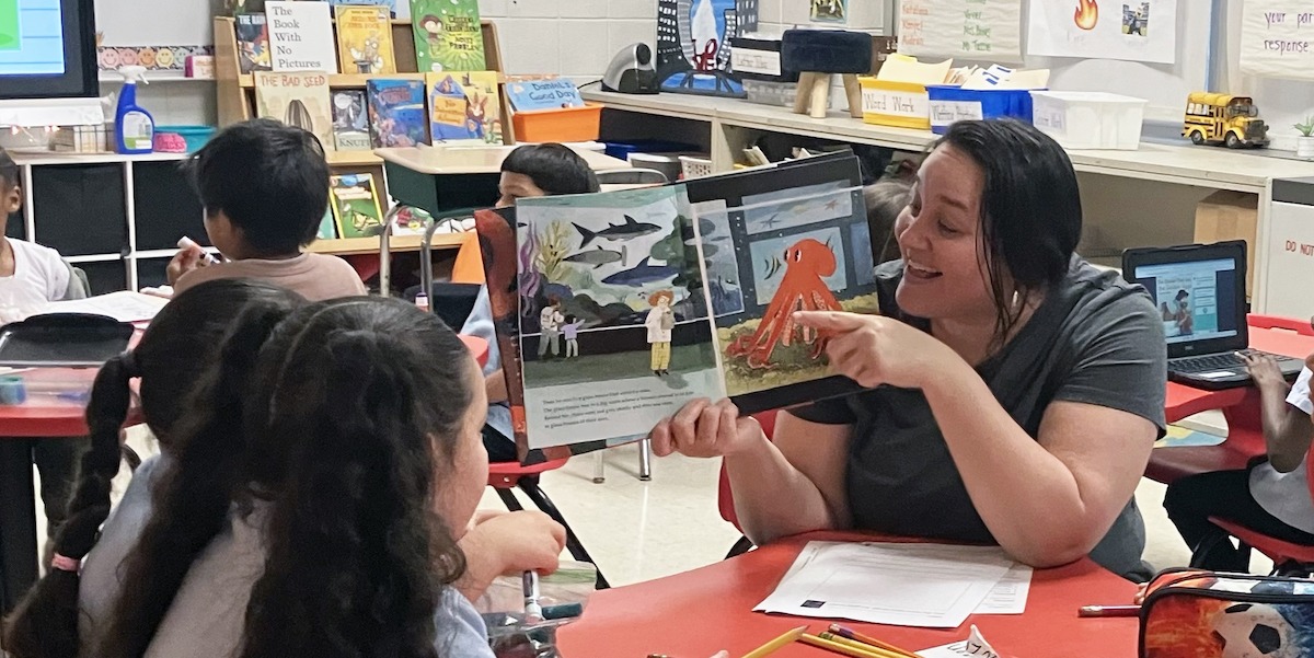 It’s the last month of the 2024-2025 school year, and most students are daydreaming about the fast approaching summer break. In Ms. Bowes’ classroom at Julia de Burgos Elementary, however, four students sit with rapt attention as their classroom literary assistant Tassie Rivera reads from The Octopus Escapes by Maile Meloy.