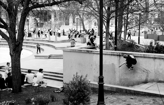 Located at the center of Philadelphia’s downtown, Love Park’s granite benches and ledges improbably turned a public space into a skateboarding mecca. But because Philadelphia in the 1990s and early 2000s was trying to jumpstart a downtown rebound, envisioning a city that appealed to white collar workers, the City thwarted skateboarding at every turn, first banning skateboarding and then eventually renovating the park in the mid-2010s. (I highly recommend this photo essay about the original LOVE Park’s last days.)