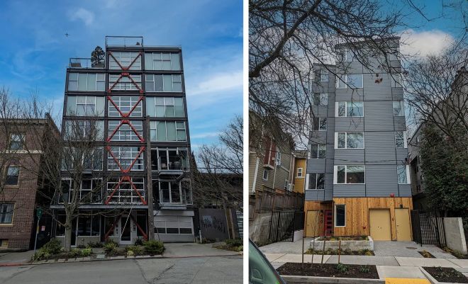 This style of building is always coming in for abuse from people who consider them “gentrification buildings” and dislike the blockiness of them. Buildings like this tend to take up all or most of a city block and can seem kind of imposing from the street level.