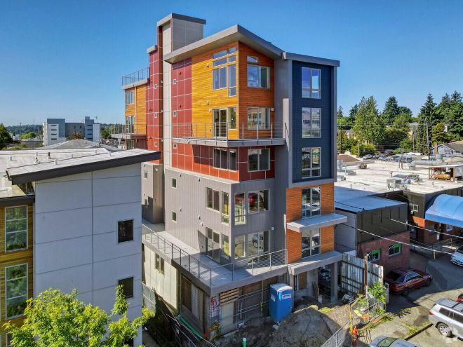 New York City and Seattle allow for another type of mid-rise building, called a Point Access Block by architects. These cities allow apartment buildings up to six stories to have a single stairwell and an elevator, with additional fire safety measures included to compensate. This allows for less-blocky mid-rise buildings on skinny lots that are more complementary to the neighborhood from a design perspective.