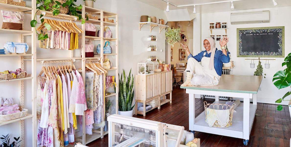 She wants her shop to be welcoming to all people from all backgrounds. To her, the naturally dyed scarves she sells in the shop are part of breaking down these barriers. Because what is a hijab, really, but a type of scarf?