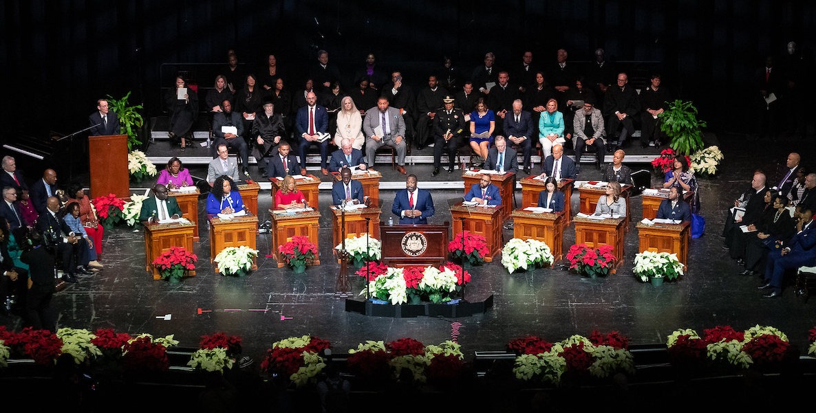 All 17 members of Philadelphia City Council, at the 2024 mayoral inauguration. Guess how many answer their emails? Photo courtesy of PHL City Council.