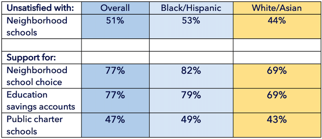 Black and Hispanic respondents are the most unsatisfied with their neighborhood schools — and the most likely to favor various forms of parental choice.