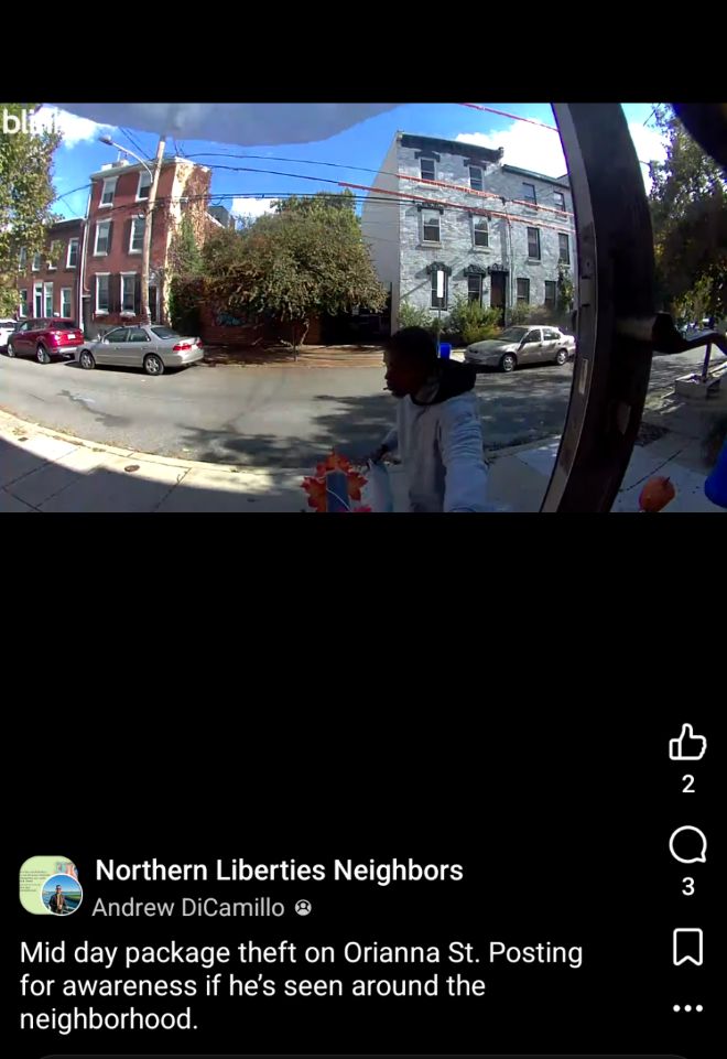 The question a reporter must pose is: At what point does an issue become more than a nuisance and something worth investigating? For this reporter, it was when my neighbor Jenny recounted a recent argument with a package thief who wears a fake Amazon vest, walks through Northern Liberties like he does most days, dragging a stolen trash can to collect packages like a reverse Santa Claus. This vignette comes just days after what seems to be the same man stole a package of mine, caught on a Ring camera, with two more packages of mine stolen in as many weeks before that.