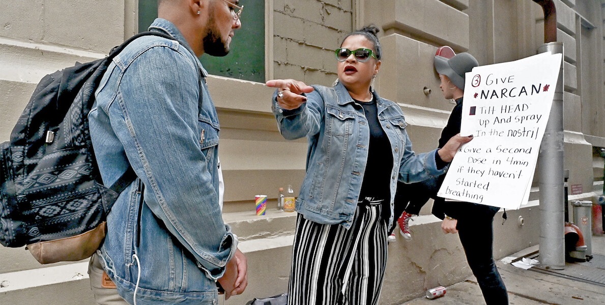 Her story has been chronicled in the news and is the subject of a short documentary released earlier this year, Hello Sunshine. The title is a reference to Pichardo’s relationship with the people she serves in her role as a harm reduction worker. Pichardo trains the public on the use of naloxone (a.k.a. Narcan) and is never without it as she passes out basic needs like socks and checks in on those she calls “my sunshines.” She carries with her a small Bible documenting each attempt at reversing an overdose, not all successful. The current tally is approximately 900 people.