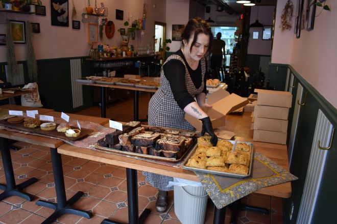 Standing in line, I met new neighbors: parents navigating strollers amid sidewalk cracks, a woman wearing a purple shirt emblazoned with “well behaved women rarely make history,” a fellow gardener with a plot in the Southwark-Queen Village Community Garden who anxiously kept an eye on Rougarou’s babka quantity every week. Sure, there was a fair bit of phone scrolling, but there were moments of connection, too: talking about tomatoes, waving to Paige (the baker) when she brought out a tray of goodies straight from the oven, holding a spot for a neighbor who forgot their wallet at home.