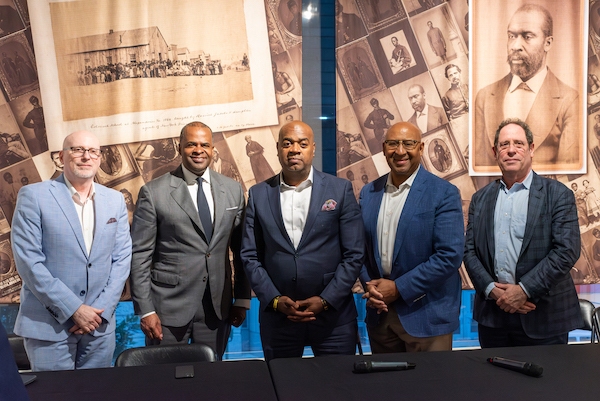 Former Mayor Michael Nutter, podcast hosts and guests. Photo: Jahlil Pleasant/SharpShooter Visuals LLC