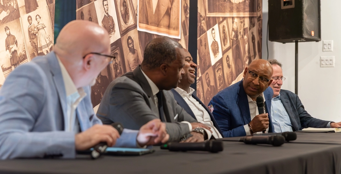 On stage with Reed for a conversation about how cities can grow Black business and wealth were his podcast co-hosts, former Philadelphia Mayor Michael Nutter and Citizen Co-founder Larry Platt; Newark, NJ, Mayor Ras Baraka; and Bruce Katz, director of the Nowak Metro Finance Lab at Drexel University.