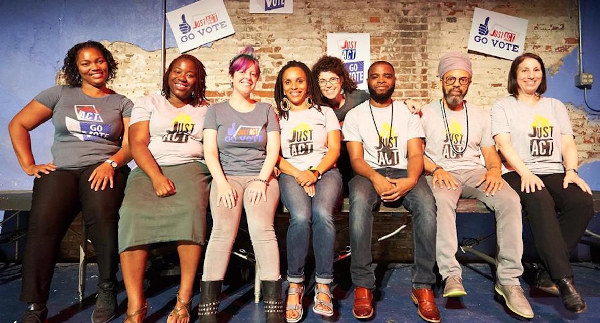 Since launching in 2015, Just Act has staged over 15 performances tailored to different audiences. Last fall, they held a workshop about what it means to canvass as a white person in a neighborhood where the population is predominantly made up of people of color. Another workshop with JVES Human Services, a nonprofit that offers job-readiness and career training, focused on the impact of parents’ and elders’ attitudes on young people’s view of voting.