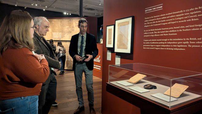 “It is fitting, then, that the APS Museum has mounted this exhibition drawn almost entirely from its own collection, which brings together these extraordinary versions of the Declarations for the first time in one room,” Wahl said at the opening.