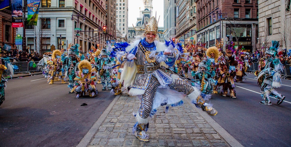 Fancy Clubs have been part of the Mummers Parade since 1901, when most folks say the event officially kicked off. These clubs are known for — and judged by — their exceedingly elaborate, exceedingly heavy costumes (sorry: suits), which they show off, peacocks-set-to-music-style outside City Hall, before pulling or full-on carrying them from Market to Washington (and often from there to Two Street) as the parade’s first performers on New Year’s Day.