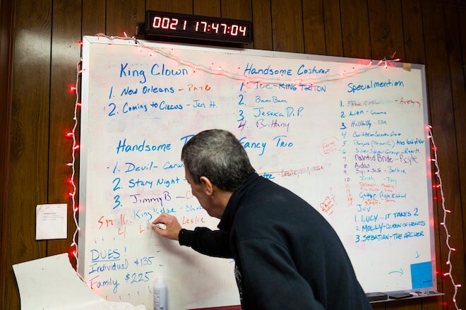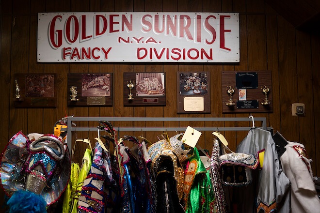 One and a half million people live in Philadelphia. Approximately 10,000 of us, according to Visit Philly, are Mummers. Of those 10,000 Mummers, fewer than 150 walk down Broad Street in the Fancy Division, and all 150 are members of the last remaining such Fancy Club, Golden Sunrise. Founded in 1960, Pennsport-based Golden Sunrise is determined to survive — by opening their clubhouse doors to anyone who’d like to join.