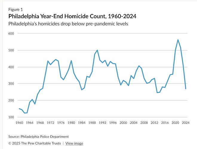 It’s worth noting that cities across the country have seen major reductions in homicides since their pandemic-era spikes. Unless there are some end-of-year tragedies, Philadelphia is on track to have its lowest homicide rate since 1967 — the last year when annual homicides were under 240.