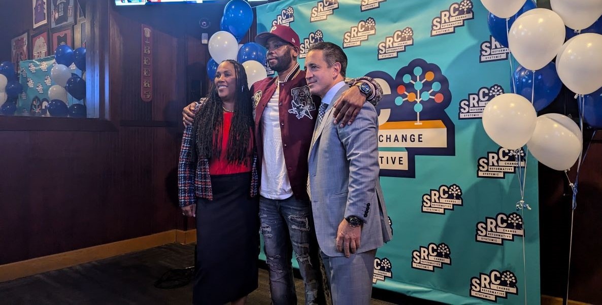 On the evening of November 5, supporters, friends, family, and activists gathered at Chickie’s & Pete’s in South Philly for the launch of Wallace’s SRC nonprofit and election night watch party, which served triple duty as a welcome home party. SRC’s COO is Arianna Williams, who has spearheaded organizing for Wallace over the last several years. Her work has been instrumental in garnering the attention of influential advocates like the Barkanns, Hip Hop artist and entrepreneur Profit, musician Tykeem, and activists B McFly and Kashif Jones, a necessity for efforts to overturn wrongful convictions. Many of them celebrated on this evening with Wallace and his legal team.