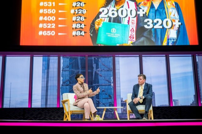 Howard discussed Hope Chicago’s revolutionary approach — and how it improves economic mobility — with Bill Golderer, president and CEO of United Way of Greater Philadelphia and Southern New Jersey. “We’re not saying to them, we’re giving you a scholarship,” Howard said. “We’re saying, this is economic mobility.”