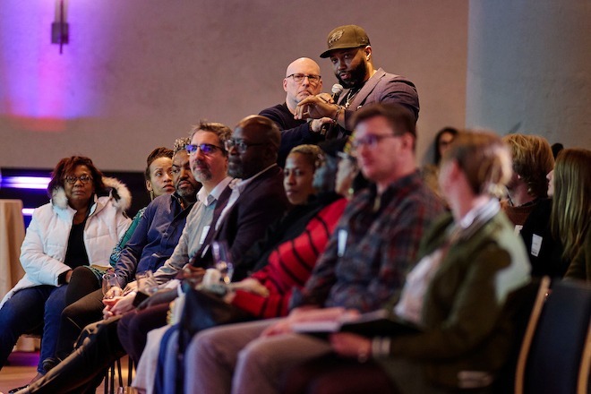 On Monday, February 10, The Citizen hosted Weinstein and Jumpstart grad Jordan Parisse-Ferrarini, a developer and founder of the nonprofit Trades for A Difference, at Development … for Good: The Opposite of Gentrification. Citizen Executive Director Roxanne Patel Shepelavy moderated the conversation between Parisse-Ferrarini and Weinsten at Fitler Club for an audience of more than 225 people — many of them grads of the program or aspiring developers themselves — about how development programs can help neighborhoods resist gentrification.